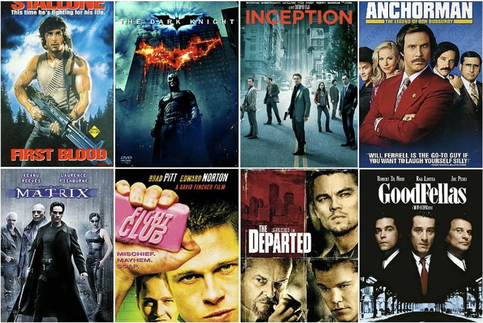 The greatest period of movies for males, from the early to late-1980s. From adventure to inspiration to romance, this golden era of men’s films had everything. Featuring Top Gun, Die Hard, Blade Runner, Terminator, Platoon, Indiana Jones, Rain Man, and Dead Poets Society.